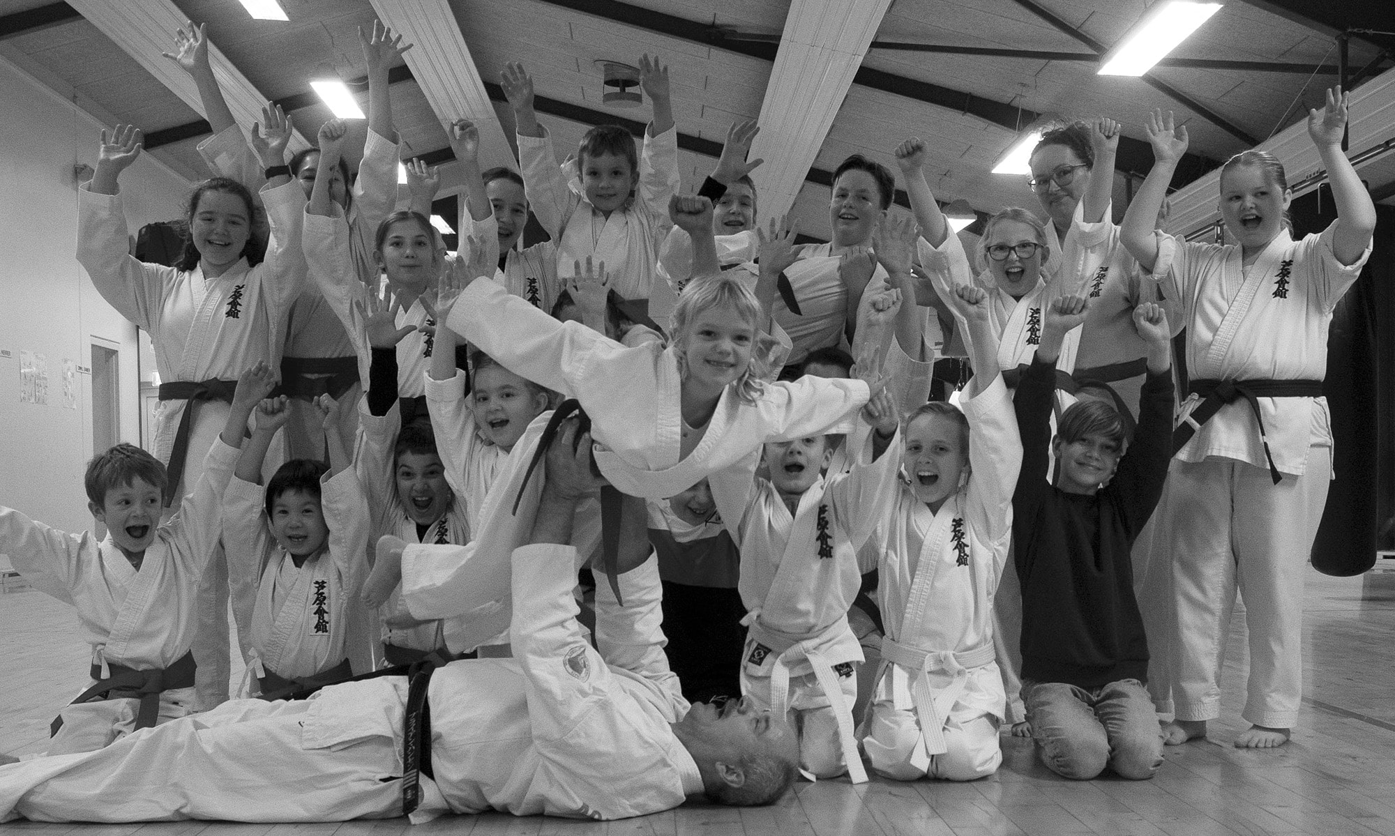 Vi har både børne- og voksenhold. Børn kan starte fra ca. 6–7 år, og man rykker typisk på voksenholdet som 14–15-årig. Men karate har ingen aldersgrænse – hos os er der også plads til udøvere 50+.